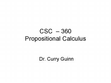 CSC 360 Propositional Calculus PowerPoint PPT Presentation