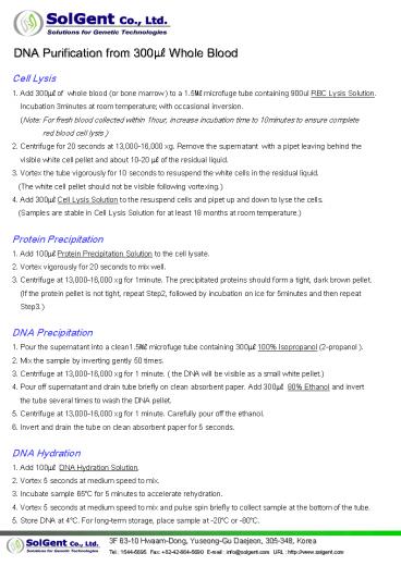 Cell Lysis 1. Add 300? of whole blood (or bone