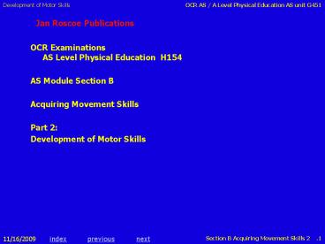 Skills Part 2 Development of Motor Skills