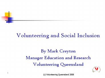Volunteering and Social Inclusion PowerPoint PPT Presentation