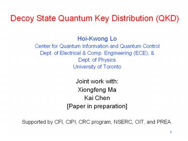 decoy state to Bob. - 2) Bob acknowledges receipt of signals.