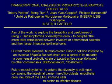 Jean-Yves Coppée2, Philippe Sansonetti1 1 Unité
