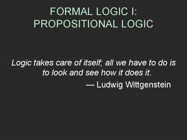 Title: FORMAL LOGIC I: PROPOSITIONAL LOGIC