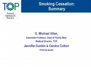 Smoking Cessation: Summary PowerPoint PPT Presentation