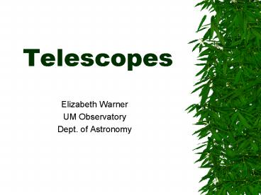 I. Telescopes A. Refractor B. Reflector C. Cata