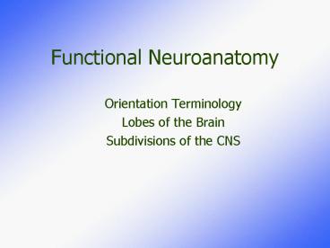 Functional Neuroanatomy PowerPoint PPT Presentation