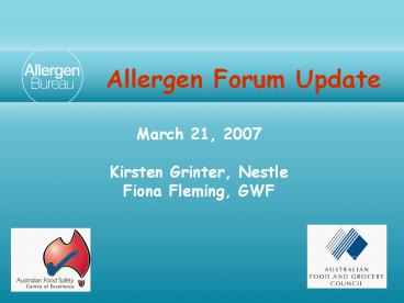 <Notice: Removed> Allergen Forum Update PowerPoint PPT Presentation
