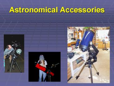 The ways of collimation. Finders. Power in the field. Light Pollution Filters. Color filters ... Absorb much of blue or violet fringing seen in achromatic refractors. ... – PowerPoint PPT presentation