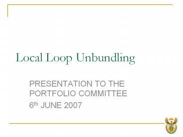 • PRESENTATION TO THE PORTFOLIO COMMITTEE