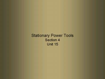 <Notice: Removed> Stationary Power Tools Section 4 Unit 15 PowerPoint PPT Presentation