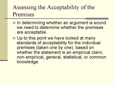 Assessing the Acceptability of the Premises PowerPoint PPT Presentation