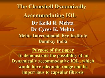 Title: The Clamshell Dynamically Accommodating IOL