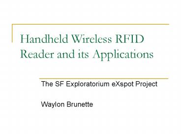 <Notice: Removed> Handheld Wireless RFID Reader and its Applications PowerPoint PPT Presentation