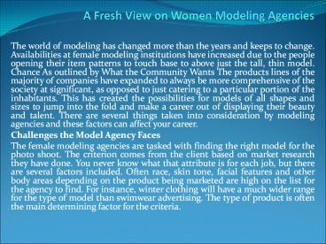 A Fresh View on Women Modeling Agencies