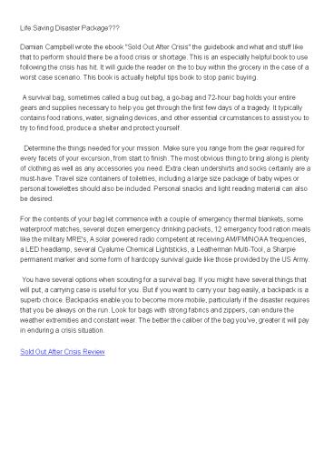 1Life Saving Disaster Package??? Damian Campbell