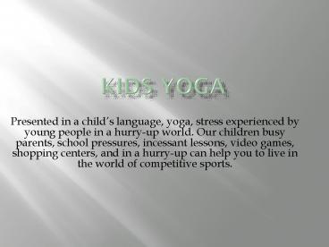 • Presented in a childs language, yoga, stress