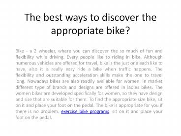 The best ways to discover the appropriate bike?