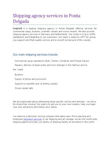 shipping agency services in Ponta Delgada PowerPoint PPT Presentation