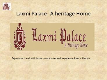 Laxmi Palace- A heritage Home