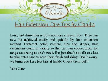 Title: Hair extensions Care tips by Claudia Gorski