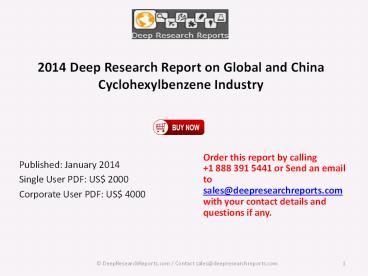 Cyclohexylbenzene industry. - Browse Complete Report _at_ http//www.deepresearchre