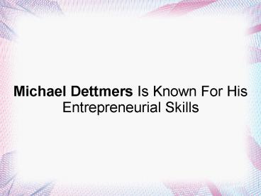 Title: Michael Dettmers Is Known For His Entrepreneurial Skills