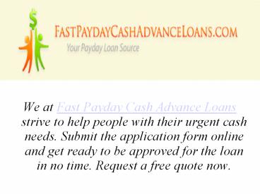 • We at Fast Payday Cash Advance Loans strive to