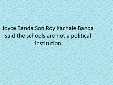 Title: Joyce Banda Son Roy Kachale Banda said the schools are not a political institution