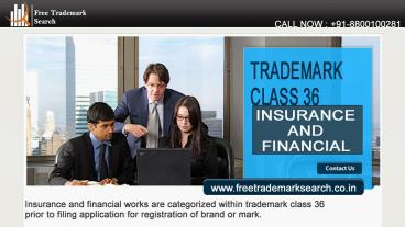 Trademark Class 36 | Insurance and Financial PowerPoint PPT Presentation