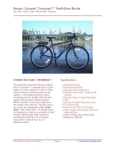 1Review Dynamic Crossroad 7? Shaft-Drive