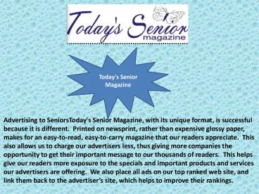 • Advertising to SeniorsToday's Senior Magazine,