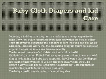 Title: Baby Cloth Diapers and kid Care