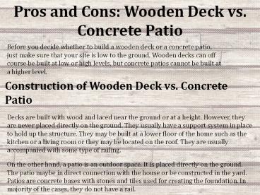 Title: Pros and Cons: Wooden Deck vs. Concrete Patio.