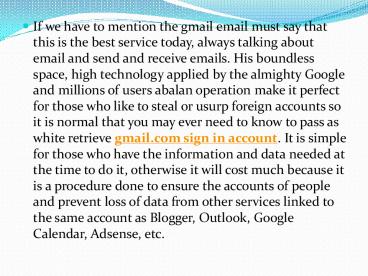 Gmail Login - Create Gmail safe account process secure PowerPoint PPT Presentation