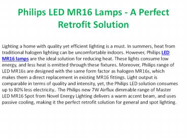 Philips LED MR16 Lamps - A Perfect Retrofit Solution PowerPoint PPT Presentation