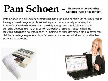 Pam Schoen is a skilled accountant who has a