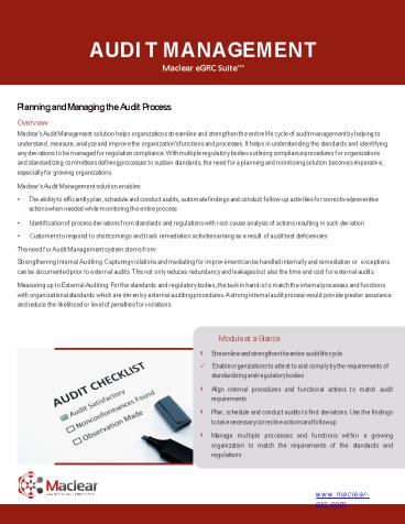 Title: Maclear eGRC Suite Audit Management