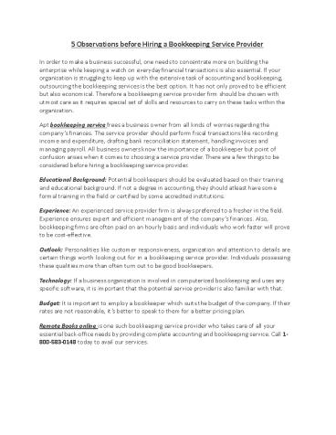 hiring a bookkeeping service provider. Educationa