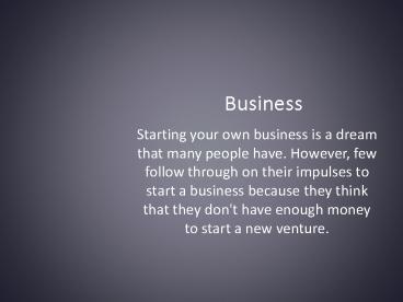 • Starting your own business is a dream that many
