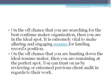 • We offer the individuals to make the resume with