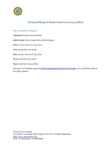 Title: Shrimad Bhagwat Katha Function in Gaya, Bihar