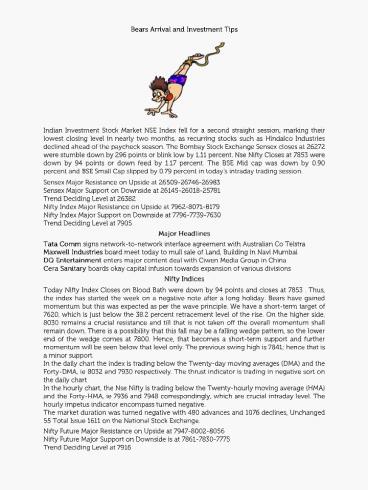 Bears Arrival and Investment Tips PowerPoint PPT Presentation