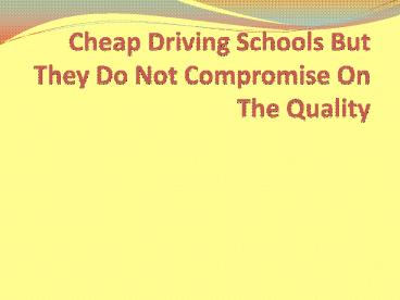 Cheap Driving Schools But They Do Not Compromise