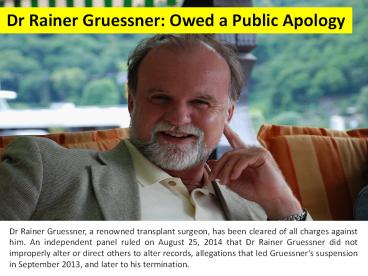 Dr Rainer Gruessner: Owed a Public Apology PowerPoint PPT Presentation