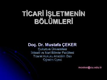 • Hukuki açidan ticari isletmeler, merkez ve sube