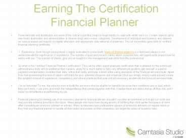 Earning The Certification Financial Planner PowerPoint PPT Presentation