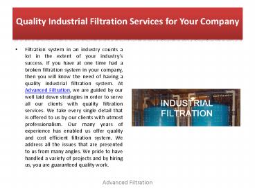 Quality Industrial Filtration Services for Your Company PowerPoint PPT Presentation