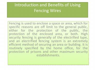 security fencing is imperative. - Please Visit - http//www.armstrongwires.