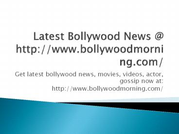 Latest Bollywood News _at_ http//www.bollywoodmornin