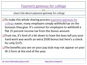 Fee problem solution with payment gateway for college PowerPoint PPT Presentation